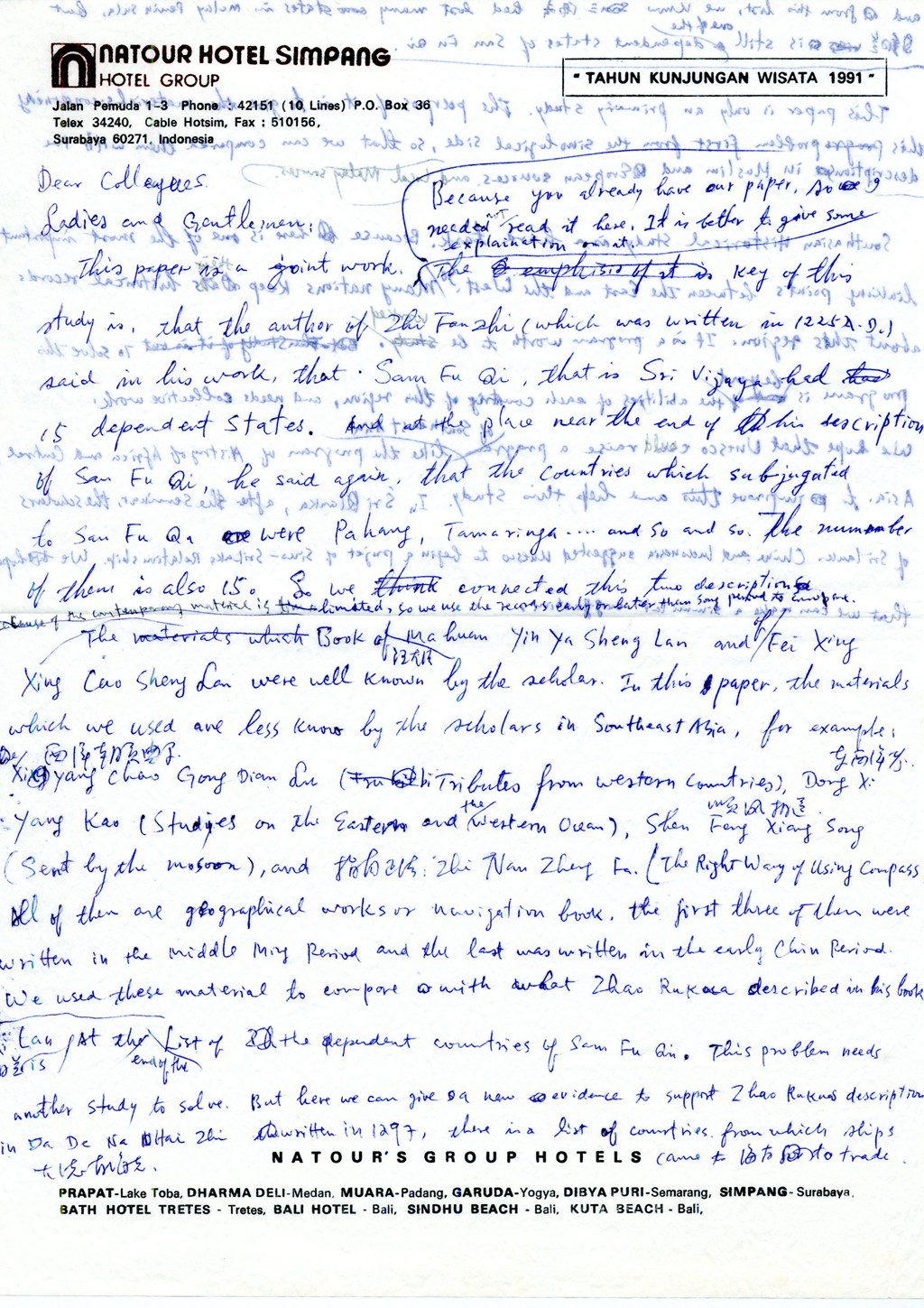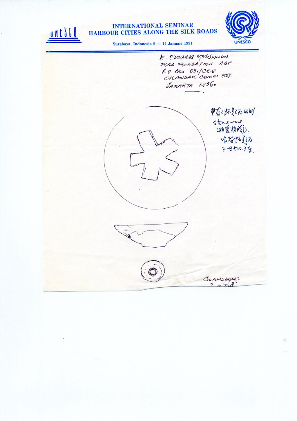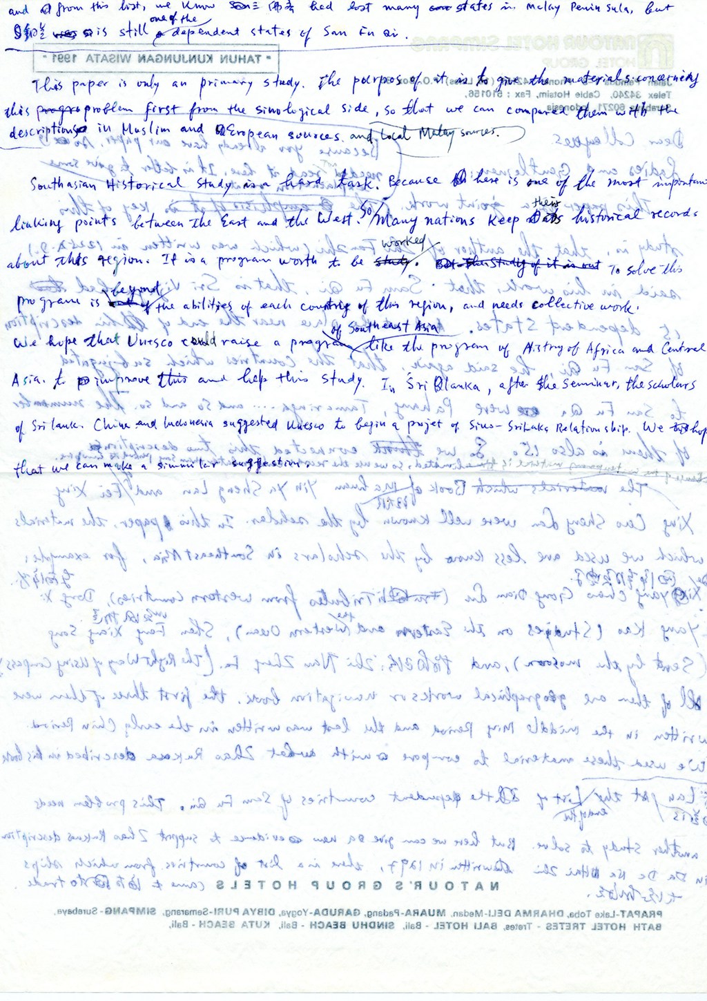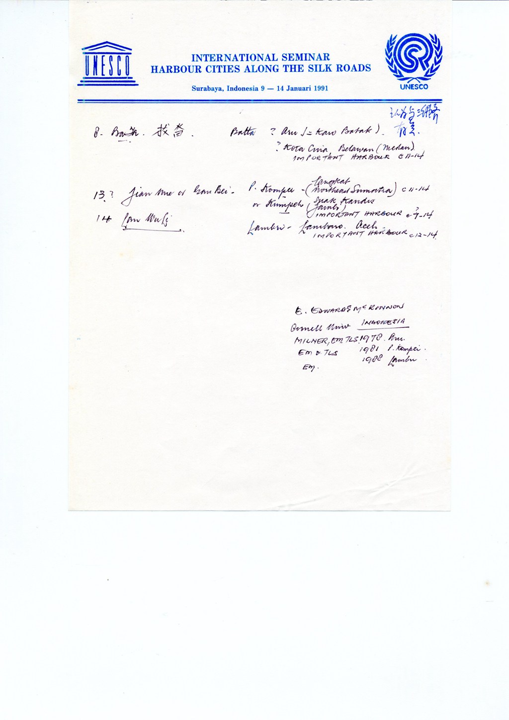 1991年1月海丝考察印尼讨论会期间手稿